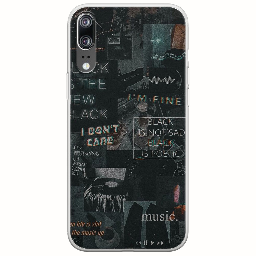 Aesthetic Black Huawei P20 Flexible TPU (Διάφανη Σιλικόνη)