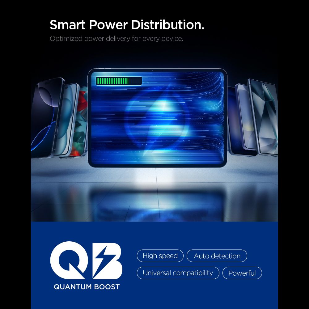 Η τεχνολογία έξυπνης κατανομής ισχύος προσαρμόζει αυτόματα την ένταση ρεύματος ανάλογα με τη συσκευή, προσφέροντας ασφάλεια και σταθερότητα.