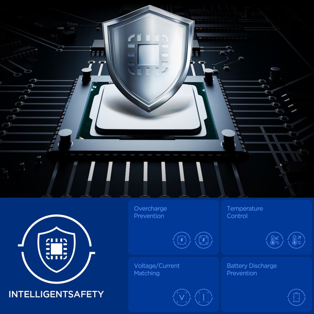 Ενσωματωμένα συστήματα προστασίας αποτρέπουν υπερθέρμανση, υπέρταση και βραχυκύκλωμα.