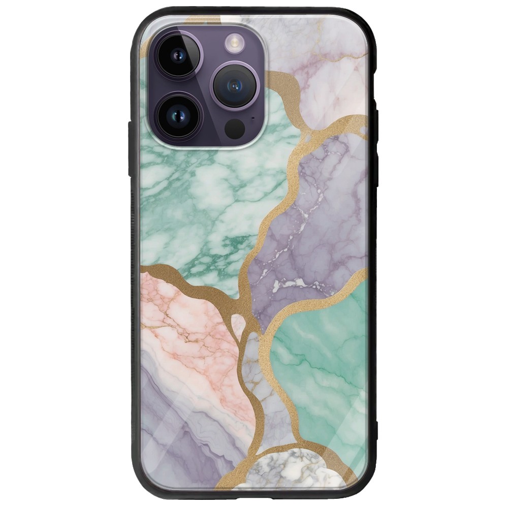 The Marble Collection - Pastel iPhone 15 Pro Groove TPU (Tempered Glass και TPU)